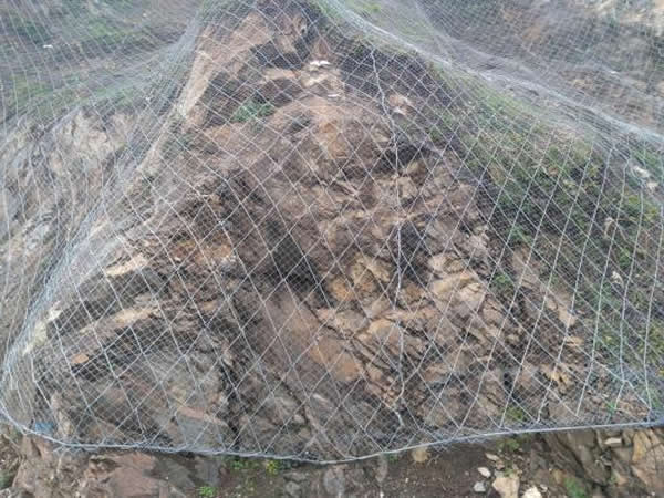 特点及优势:APS-200型采用绞索网为主体的防护系统,通过锚垫板及锚杆进行锚固的另一种加强型主动防护网。适用于高陡岩质边坡加固、孤石和松动的危岩加固,是由强度大于1770MPa的三股钢丝绞合而成,编织成蜘蛛网状。此系统适用于碎石和较大石块的混合型边坡防护将绞索网覆盖在有潜在地质灾害的坡面上,将坡体岩土東缚在原位,抑制其移动。从而给整个边坡形成连续支撑,实现主动防护功能。